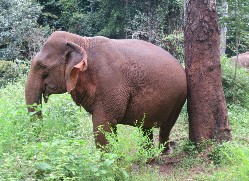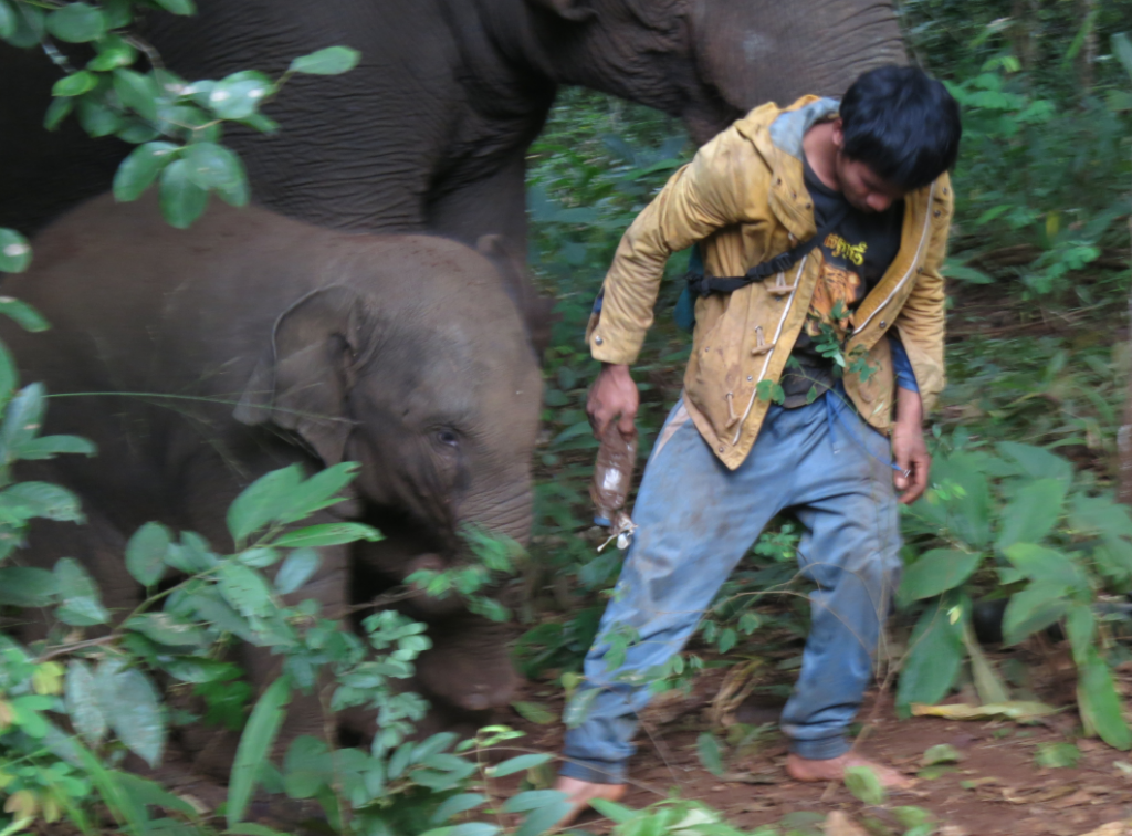 Anyhow these elephants are either „freed“, that means they have a final contract with the project, to stay forever = until they die. Some of them have shorter contracts, a year, 5 years, … and their owners get paid an income in the meantime. The mahouds (in the picture), also paid by the project, do take care of „their“ elephant (not exclusively, because they also do have weekends, the mahouds, not the elephants), so know where they are, take care they eat and drink enough, bathe them if needed, … The project, again, performs health checks on the elephants, to check if they do eat and drink enough, have any other problems, injuries, need the vet, ….. Quite something.
