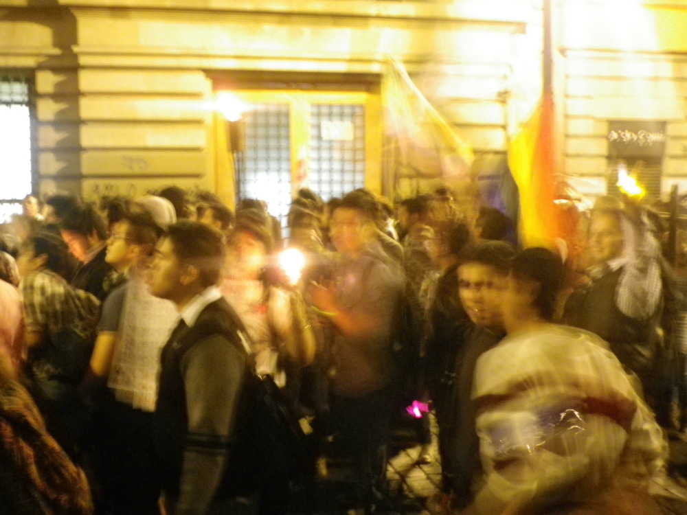 I abandoned it earlier since we came back home and interviewed Abraham (who is mentioned by name here as you have to go stay in his airbnb-place if you are in Mexico City) who just came back from the major demonstration that took place here today. By bike with his small daughter, because she was getting tired… Plus the live coverage on tv, it was clear things were not escalating, and flat-mate C. offered to come with me and the Paseo de la Reforma really is in walking distance of 5 minutes.