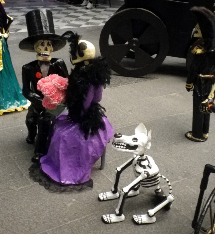 Local decoration for Halloween / dias de los muertos is hard to top. The pic of the lady changes from lady to zombie if you change position…