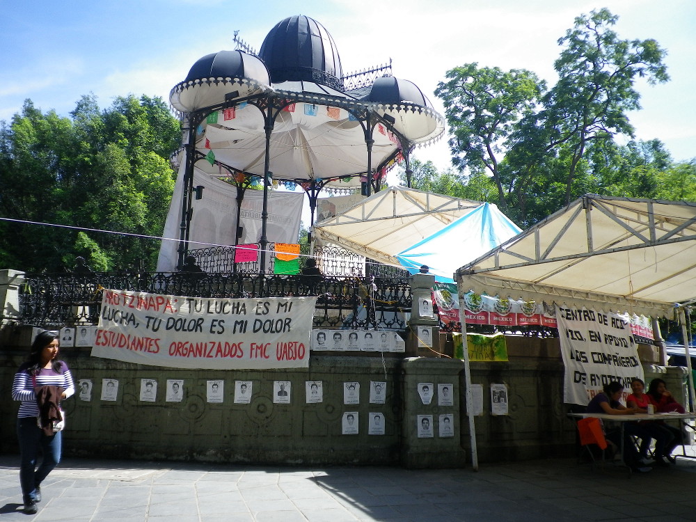 Oaxaca Zocalo (main square). Like elsewhere, the 43 students still haven’t reappeared and are being reminded of.