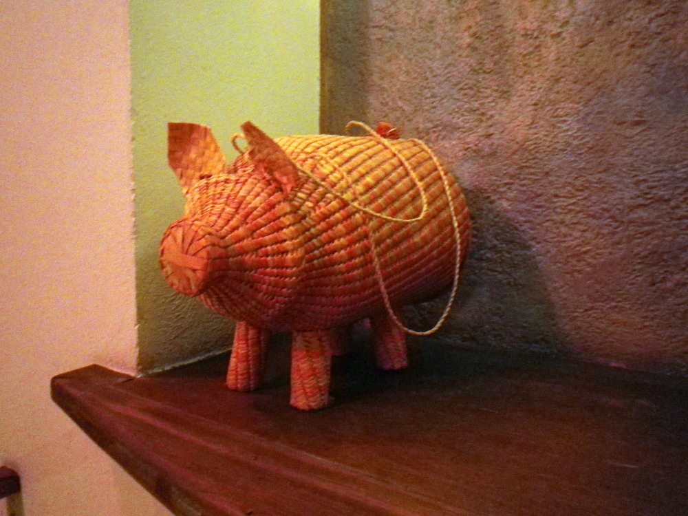 And not to forget – I did get a bag, made from palm leaves, but a very decent one. And this is the goodie that will have to continue grunting without me. Well I have snoring bus-neighbors to make up for it… Farewell, mexican Miss Piggy!
